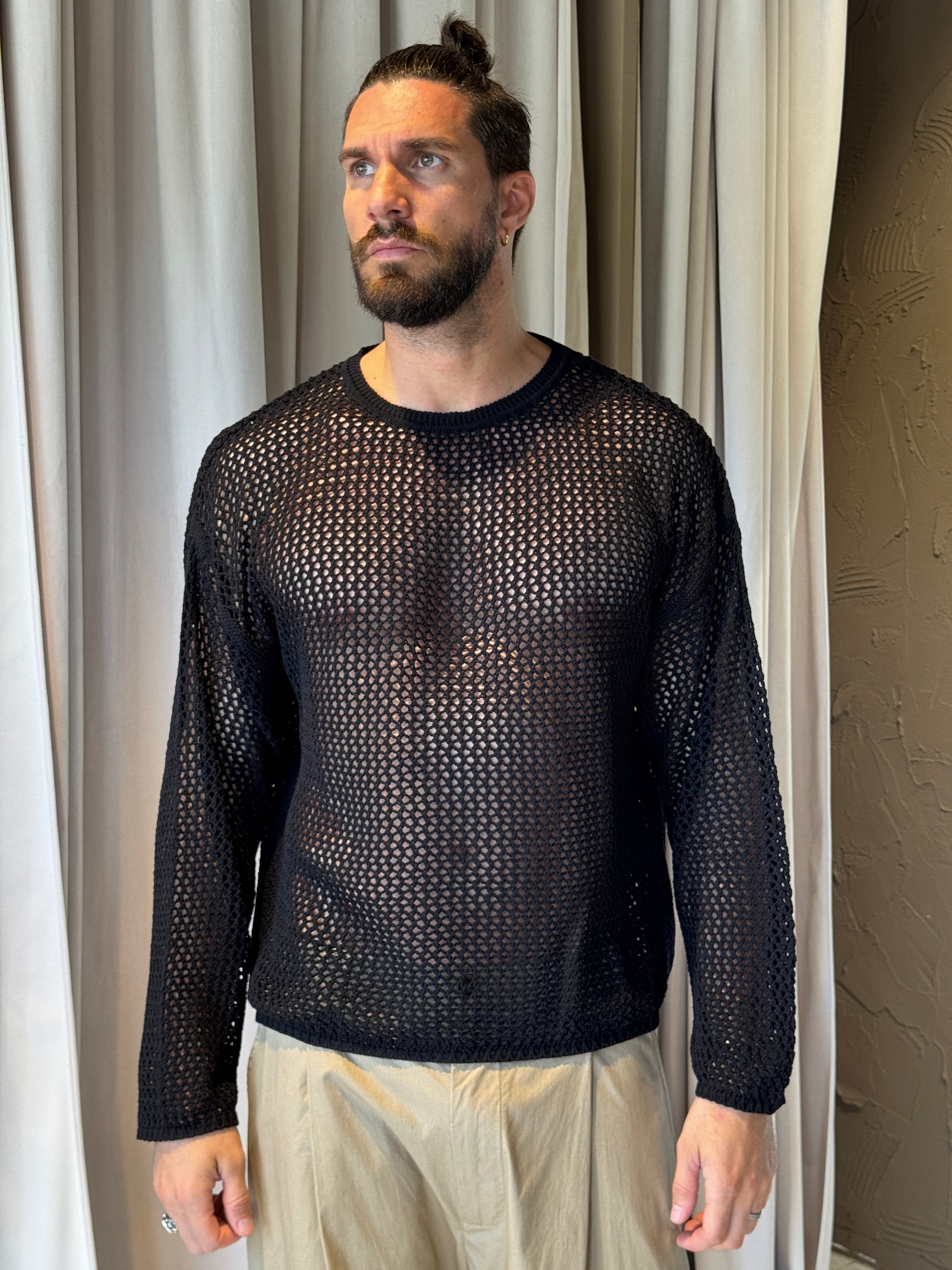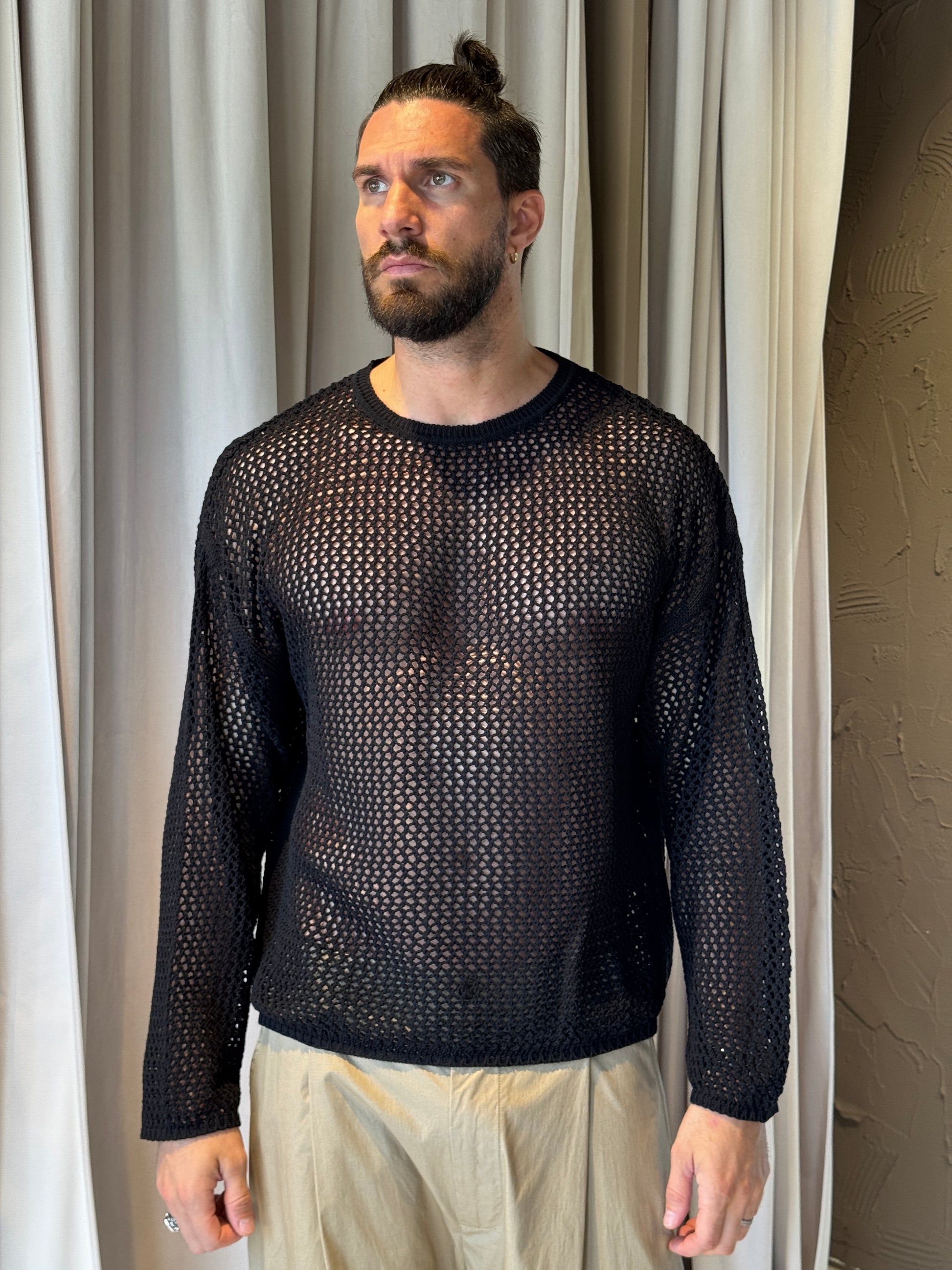 Maglia in cotone traforata, manica lunga.