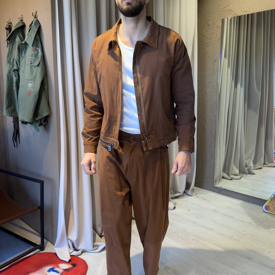 Pantalone con pence modello largo, lunghezza alla caviglia, tessuto 100% cotone. Vita ferma davanti e elastico dietro così il pantalone risulta più comodo.