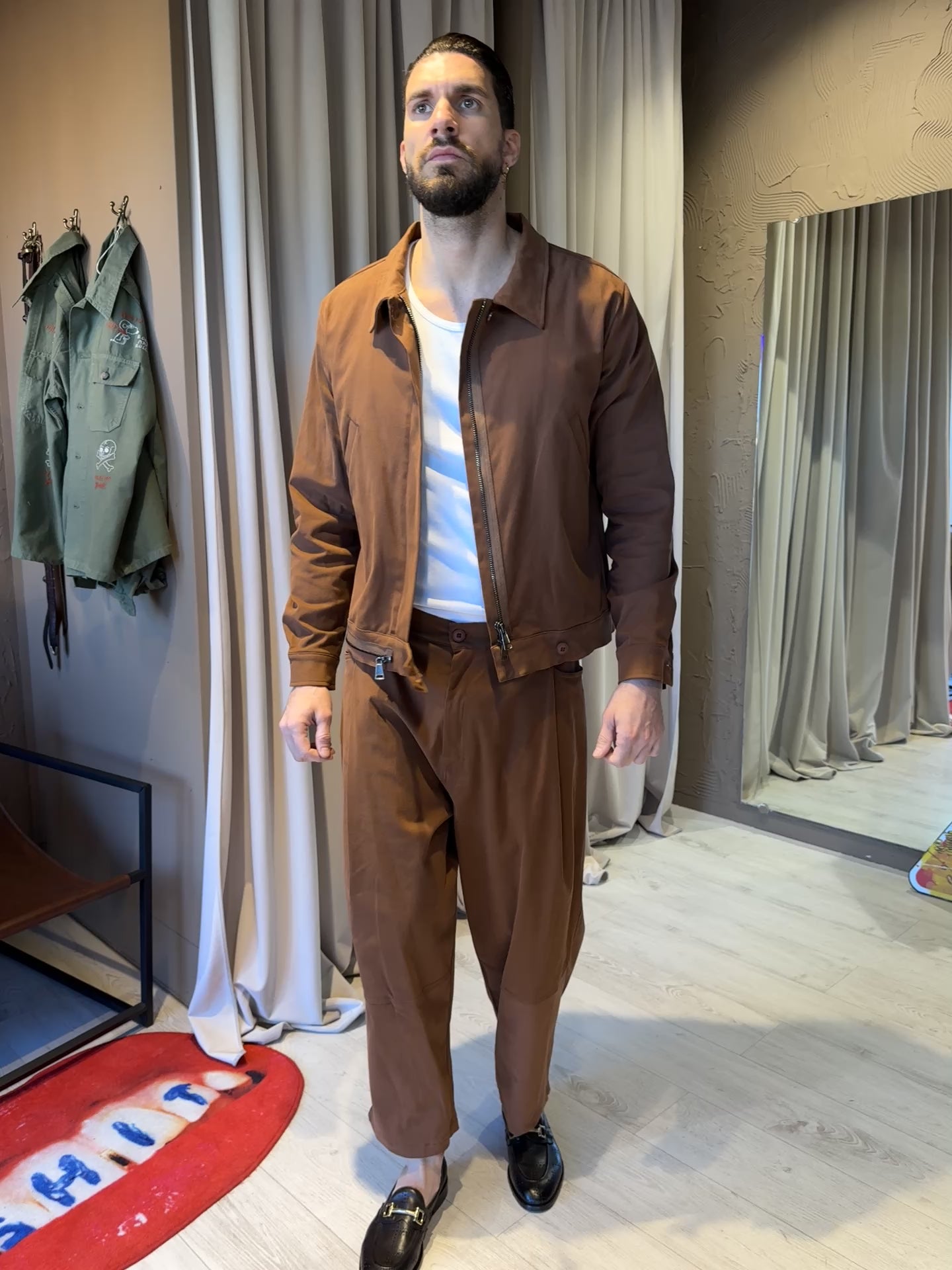 Il modello è alto 191 e pesa 92 kg indossa una taglia 3