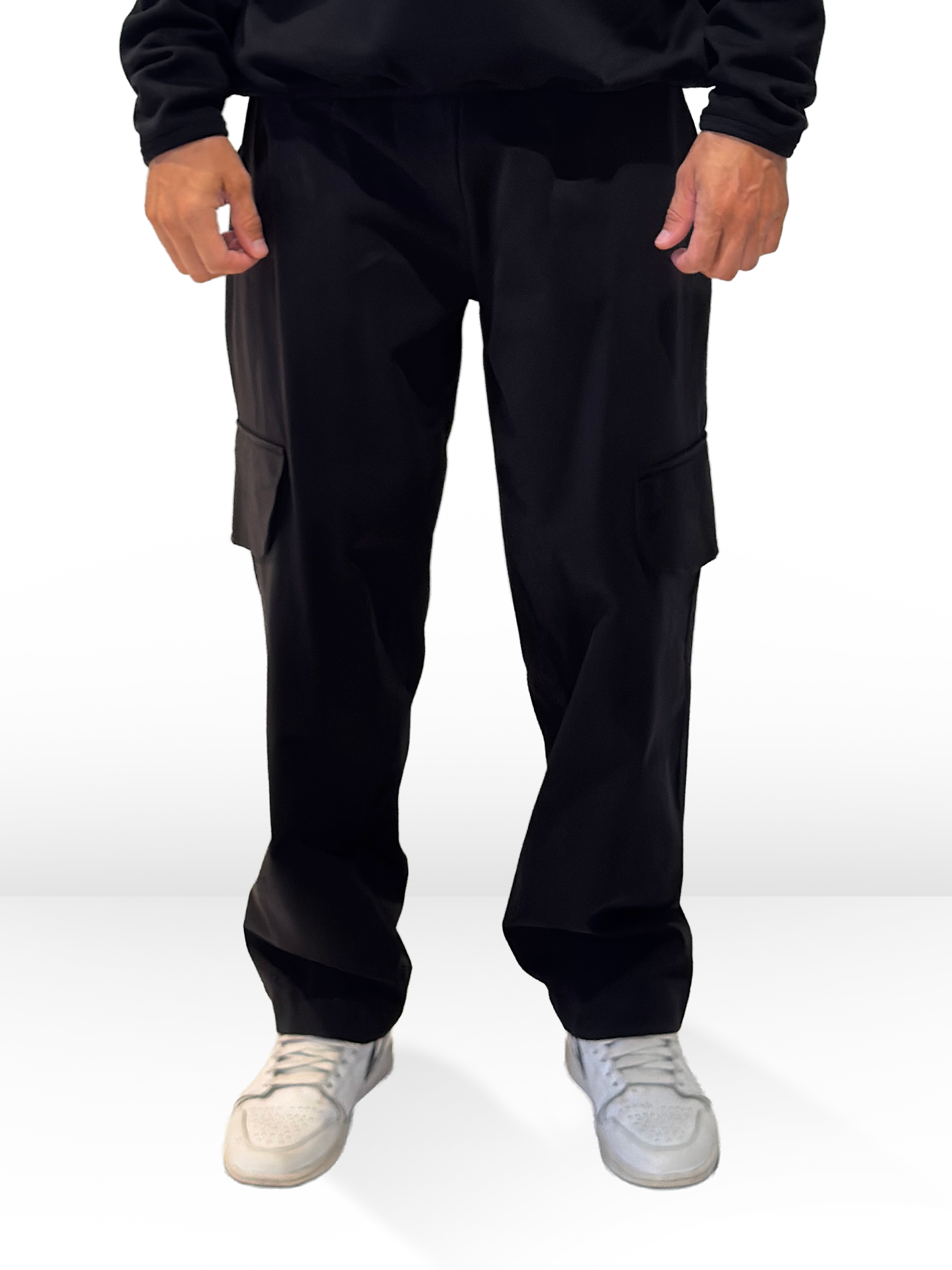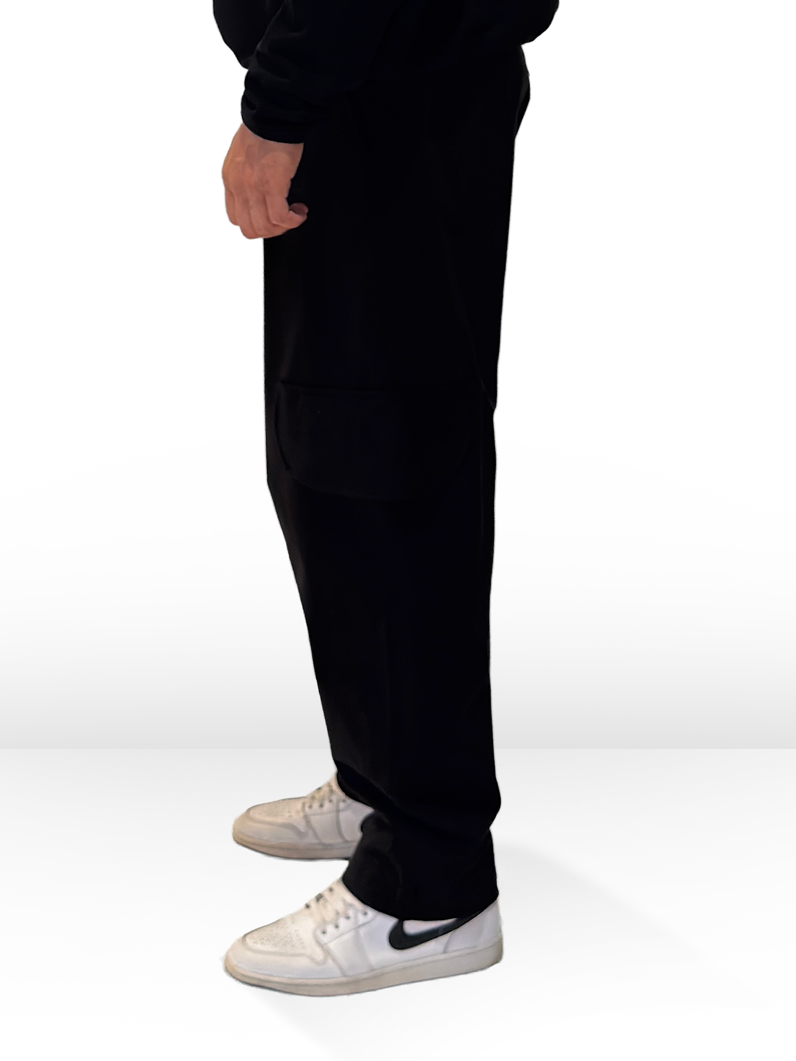 Pantalone 100% cotone mano pesca, modello cargo con elastico in vita, veste lungo e morbido fondo 22 cm.
